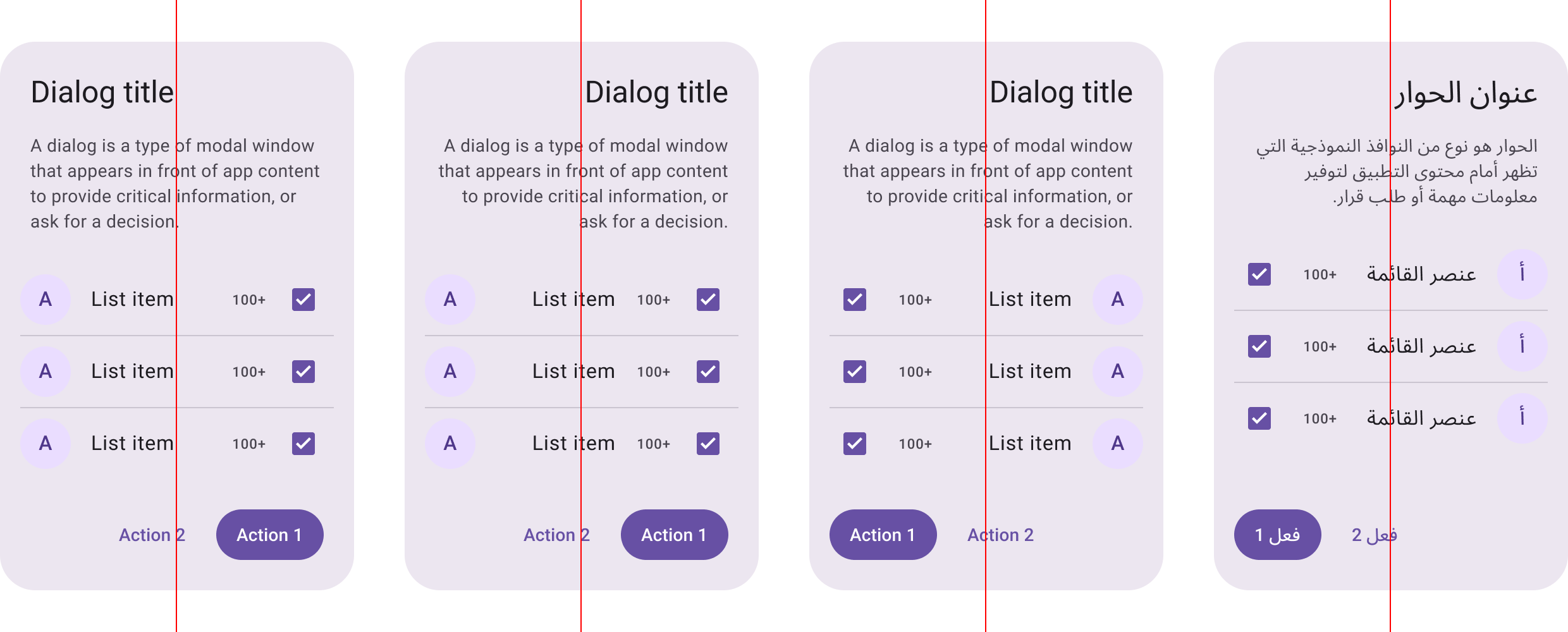 See here how the balance changes as we shift the design around towards mirroring. Notice how the second panel feels off ballance. The text feels disconnected from the Avatar and the controls feel over emphasized. Look at the third panel. See how mirroring the UI restores the balance to what the first panel has. We need that for when we render RTL UIs.
